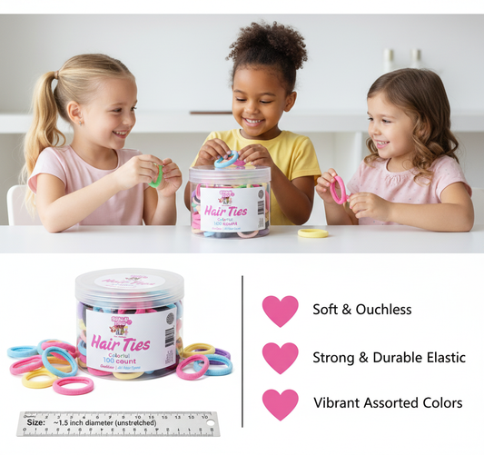 Bonsai Kids Colorful Hair Ties, Elastic No-Crease Ponytail Holders for Girls and Teens, Multi-Color, 100 Count